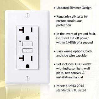 Faith 20a Gfci Outlet Slim Gfi Receptacle With Wall Plate White Walmart Com