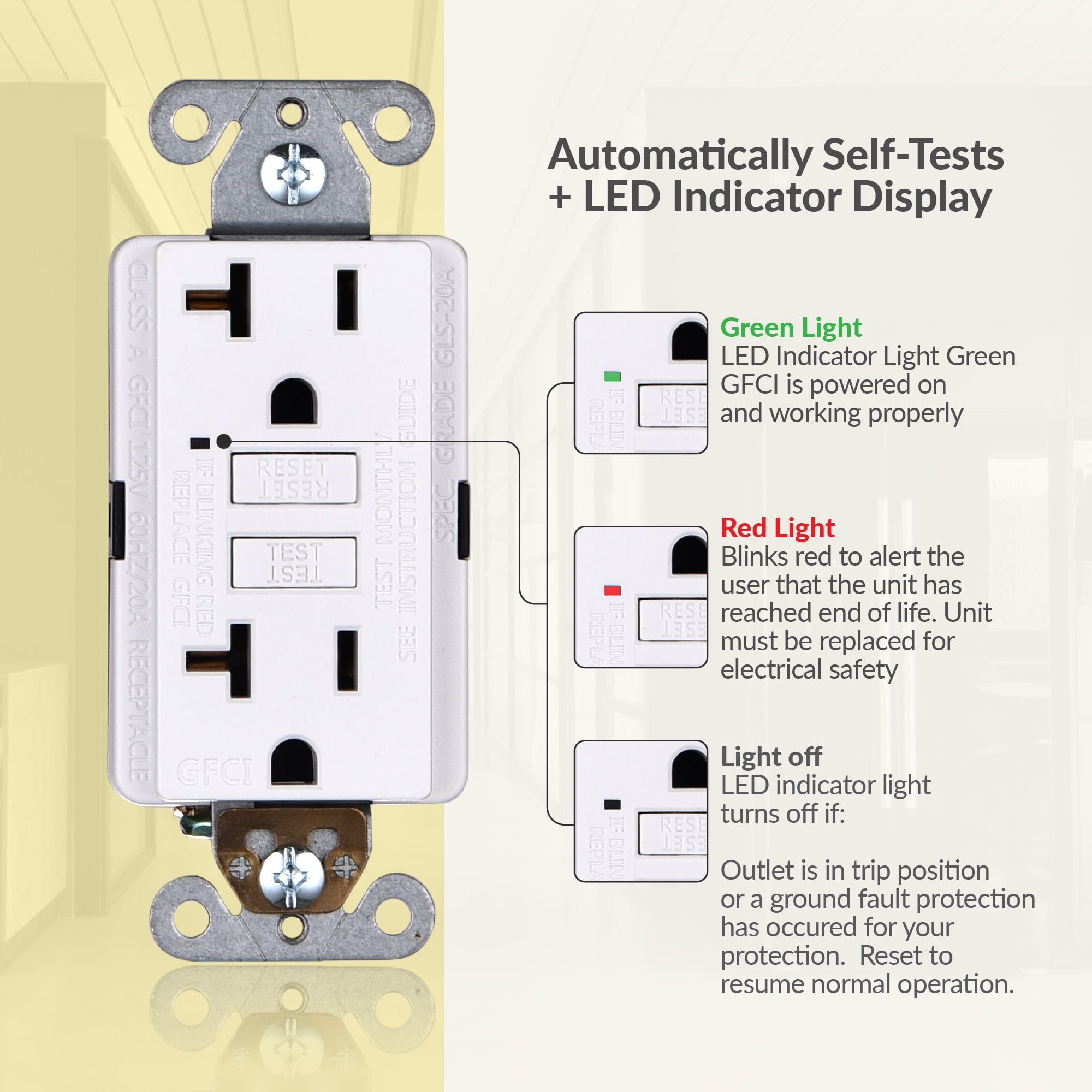 Faith 20a Gfci Outlet Non Tamper Resistant Gfi Duplex Receptacles With Led Indicator Self Test Ground Fault Circuit Interrupte
